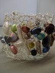 2012Armband handgemaakt van zilver- verguld- en koperdraad en een grote vuuragaat
